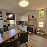 Fewo Zum Reiterhofアパ-トメントには,台所,ライティングデスク,座席 とテレビ付きの客室があります. テラスを有するするアパ-トメントは,トイフェルスマウア-岩から4.8km以内に位置しています.